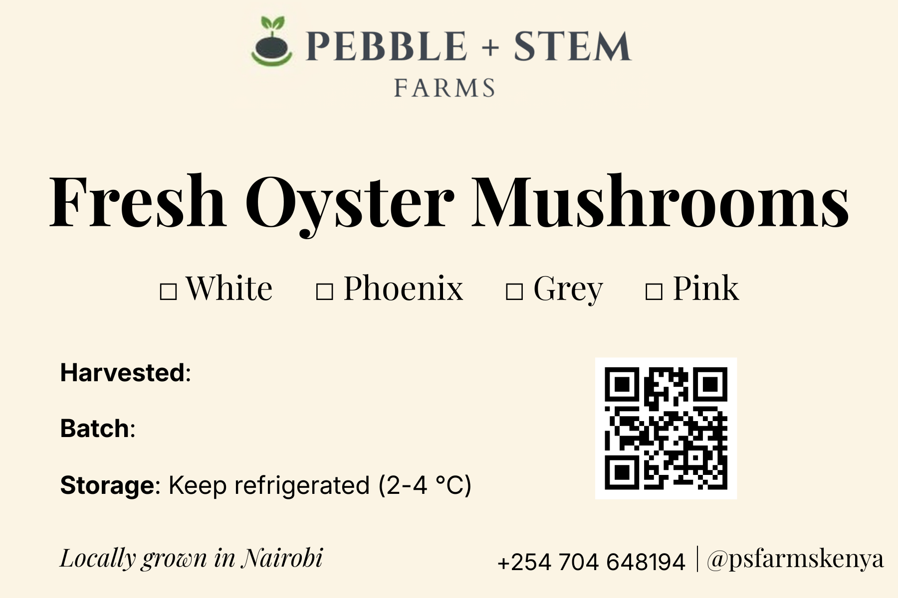 Oyster mushrooms (snow white; grey/pearl; phoenix) as our launch varieties.